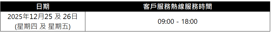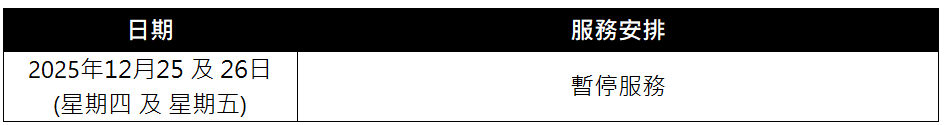 順新暉於 2025 年聖誕節假期將有特別服務安排, 詳情如下︰