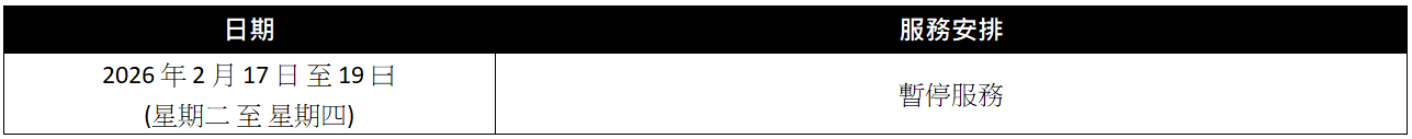 順新暉於 2026 年 農曆新年 假期將有特別服務安排, 詳情如下︰